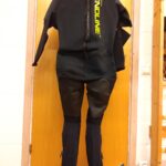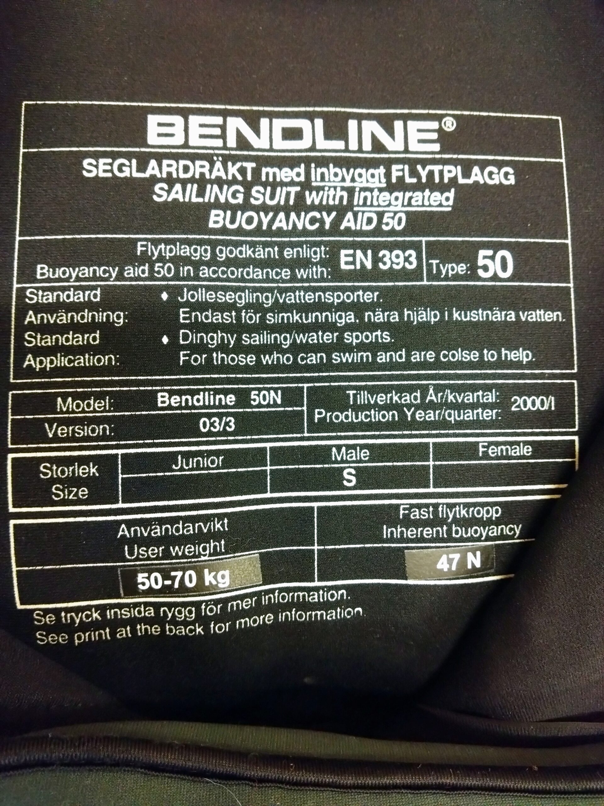 Våtdräkt med inbyggd flytväst, figursydd för jollesegling. Inbyggda fickor för krängskydd. Våtdräkterna är nya och utgångna modeller (reservlager).