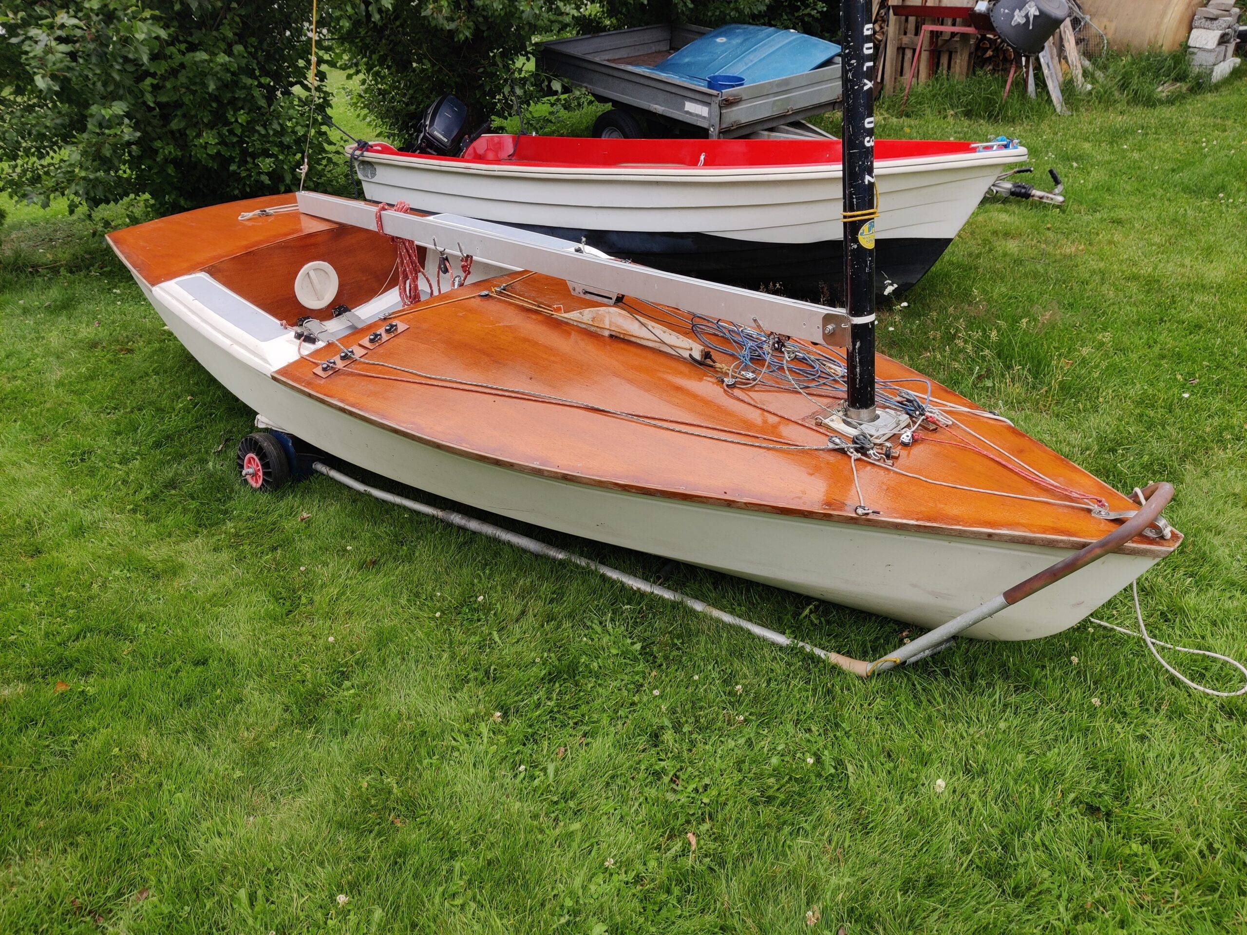 OK-jolle av modell ”äldre” 1963, som säljes komplett. Dokumentation och iläggningskärra medföljer. Finns i Årjängs kommun, nära Gustavsfors.